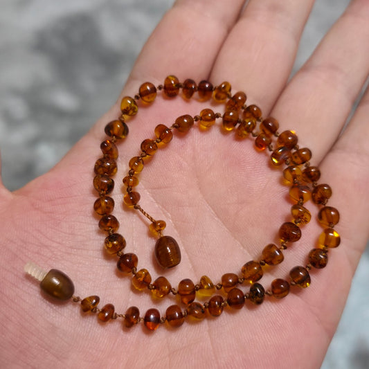 Koyu Kahverengi Sertifikalı Kehribar Bebek Kolyesi